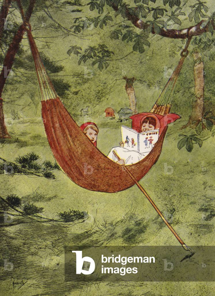 LLM6013990: "We made believe that the hammock was a boat" (colour litho), Hassall, John (1868-1948) / Bridgeman Images