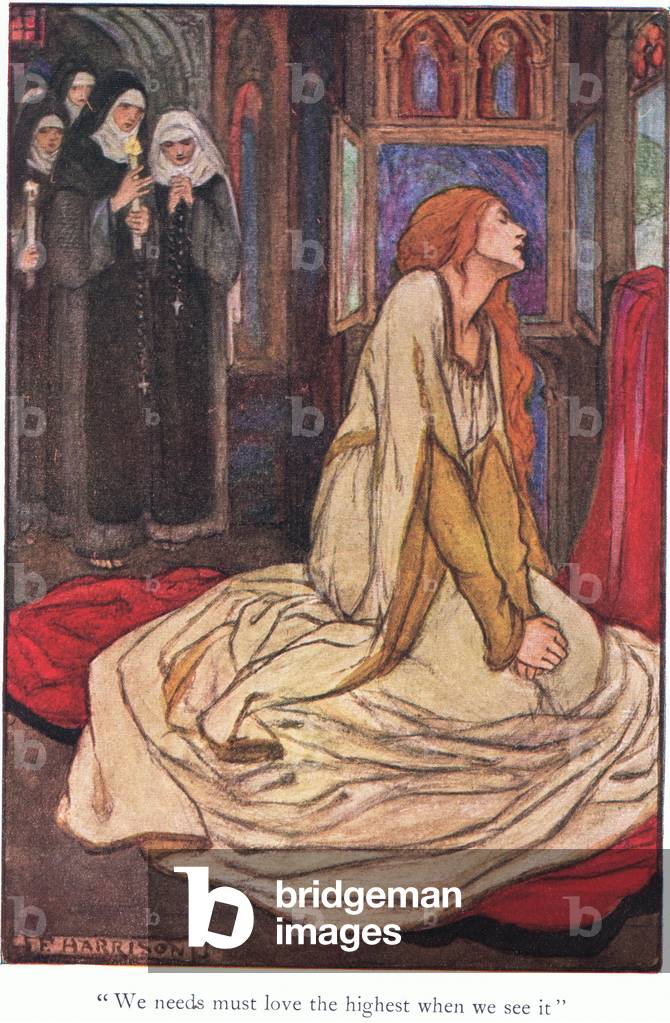 "We needs must have the highest when we see it" (Guinevere) (colour litho), Harrison, Florence (1877-1955) / Bridgeman Images