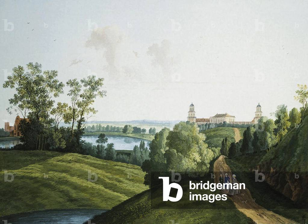 Vue du monastere Sarov (View of the Sarov Monastery), 1815 (engraving and watercolour)