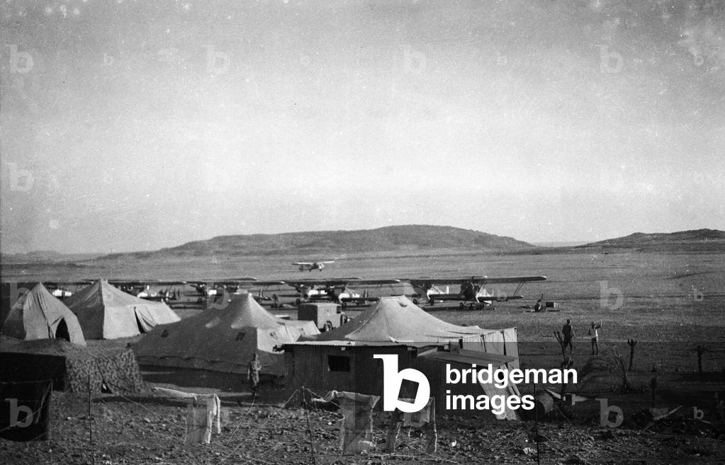 "Italo-Ethiopian War": an Italian military encampment during the Italo-Ethiopian War (or Abyssinian War) (b/w photo), Italian Photographer, (20th century) / Bridgeman Images