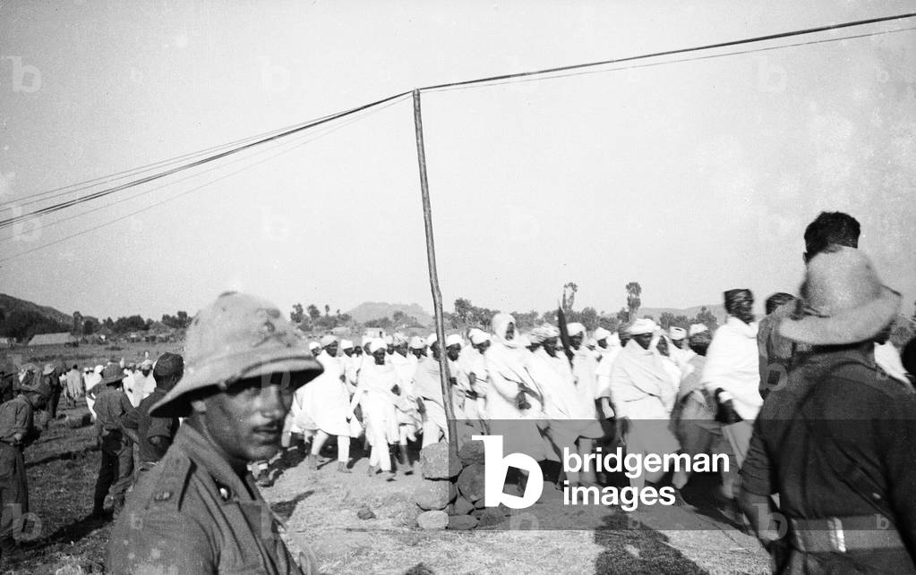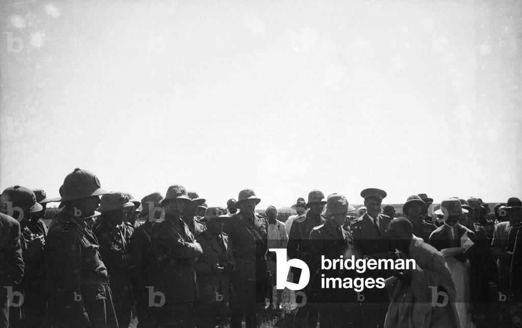 "Italo-Ethiopian War": group of Italian and Ethiopian soldiers during the Italo-Ethiopian War (or Abyssinian War) (b/w photo), Italian Photographer, (20th century) / Bridgeman Images
