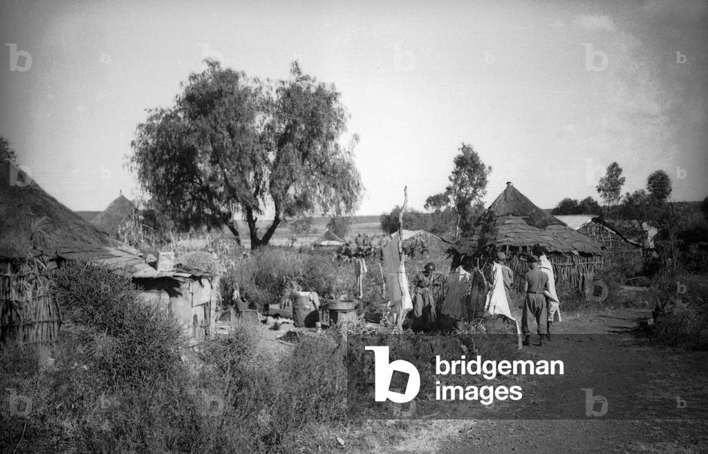 "Italo-Ethiopian War": view of an Ethiopian village during the Italo-Ethiopian War (or Abyssinian War) (b/w photo), Italian Photographer, (20th century) / Bridgeman Images