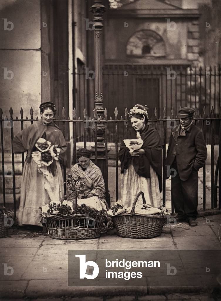 "Street life in London": Covent garden flower women, 1877 (print on double-weight paper) / Bridgeman Images