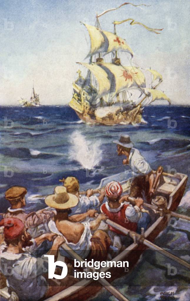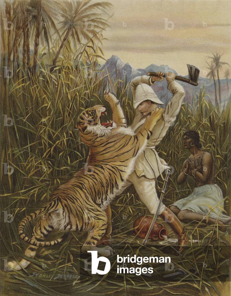 "The young lady leaped into the waves, and embracing the body of her husband, perished with him" (engraving), English School, (19th century) / Bridgeman Images