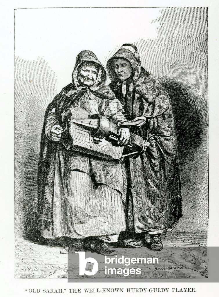 "Old Sarah" The Well-Known Hurdy-Gurdy Player, c.1840 (engraving), English School, (19th century) / Bridgeman Images