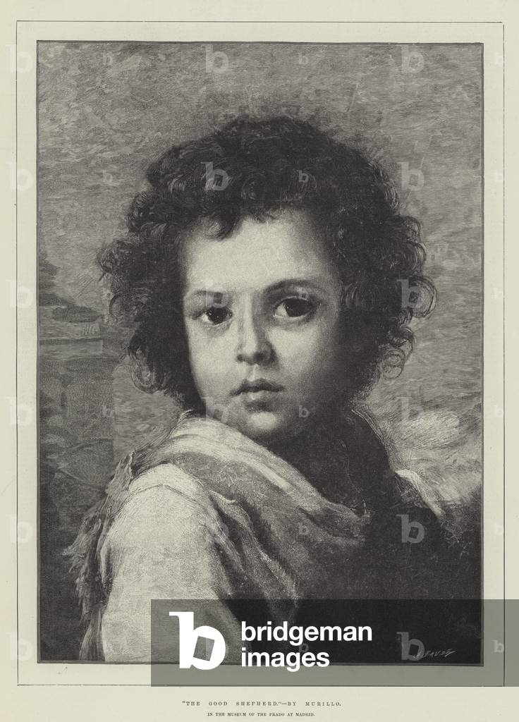 "The Good Shepherd", in the Museum of the Prado at Madrid (engraving), Murillo, Bartolome Esteban (1618-82) (after) / Bridgeman Images