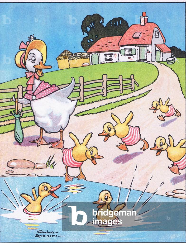 "Come on in ducks!", from Jolly Days in the Country published by Blackie & Son Ltd, 1949 (colour litho), Robinson, Gordon (active early 20th century) / Bridgeman Images