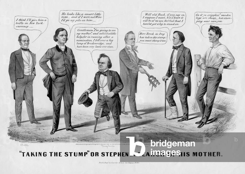 "Taking the stump", or, Stephen in search of his mother, published by Currer & Ives, New York, 1860 (litho), American School, (19th century) / Bridgeman Images