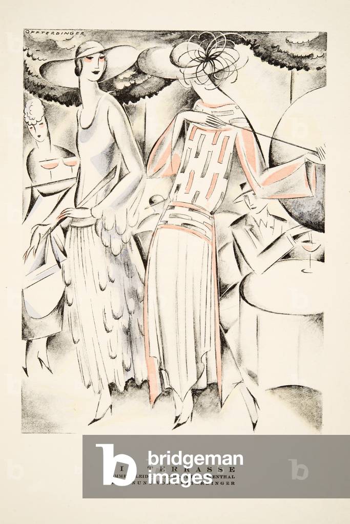 "Die Terrasse" Advertisement for Summer Dresses by Martha Lowenthal, from Styl, pub.1922 (pochoir print), German School, (20th century) / Bridgeman Images