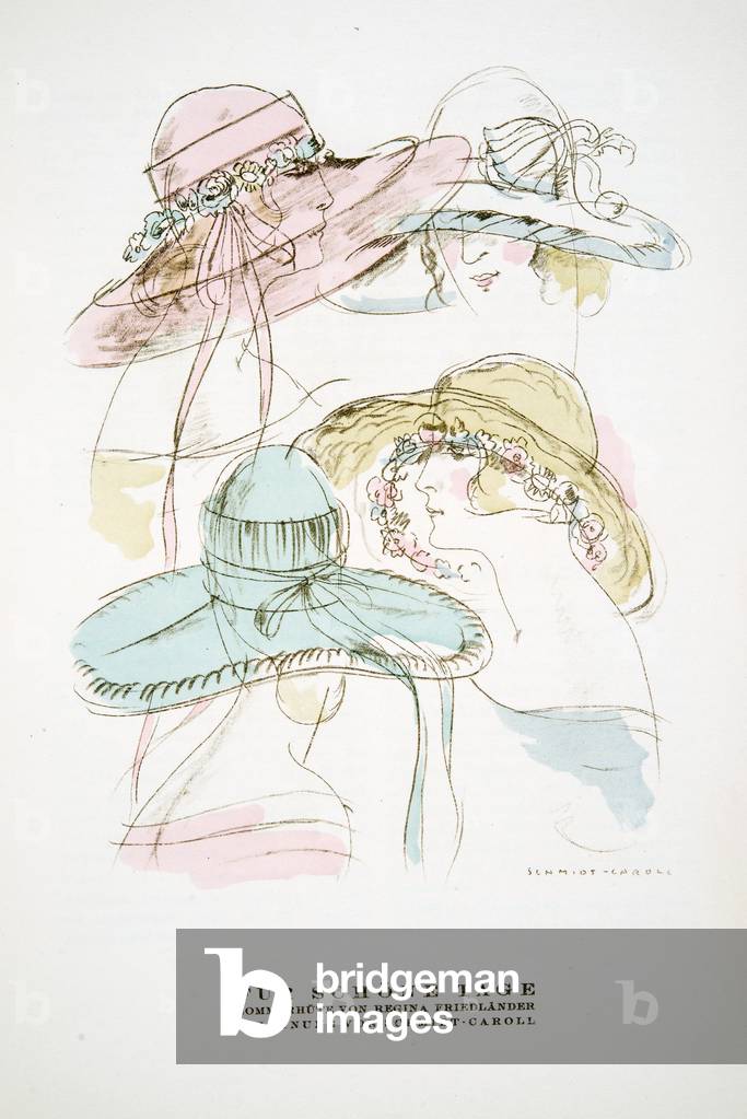 "Fur Schone Tage", advertisement for Summer Hats from Regina Friedlander, from Styl, pub.1922 (pochoir print), German School, (20th century) / Bridgeman Images
