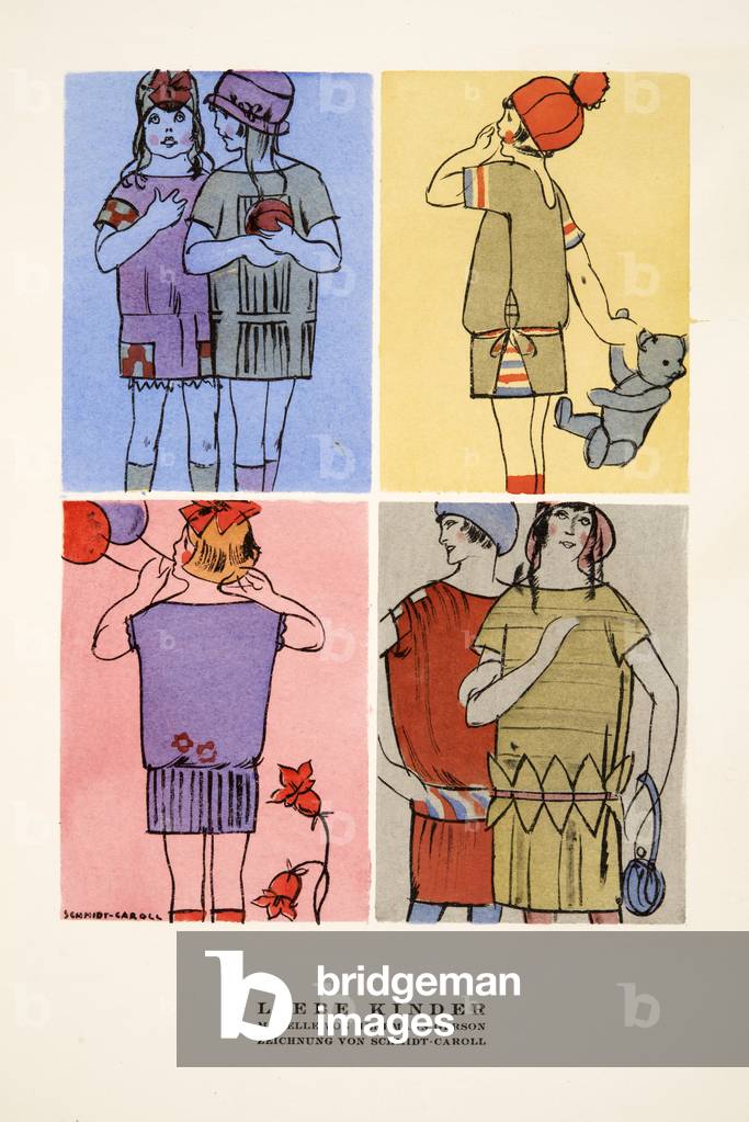 "Lieber Kinder", advertisement for Children's Clothing by Hermann Gerson, from Styl, pub.1922 (pochoir print), German School, (20th century) / Bridgeman Images