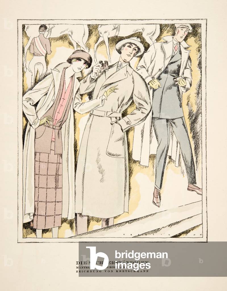 "Die Sachverständigen", advertisement for Coats by Stawropulos & Moldauer, from Styl, pub.1922 (pochoir print), German School, (20th century) / Bridgeman Images