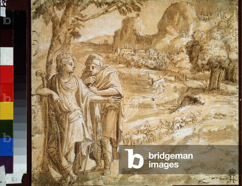 "Shepherd and Pelerin in a landscape" (Shepherd and Pilgrim in a Landcape), 1550 (watercolour), Ligorio, Pirro (c.1500-83) / Bridgeman Images