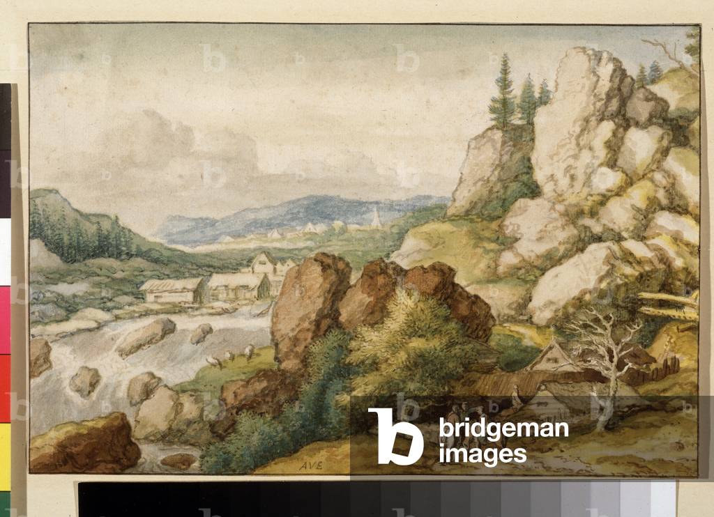 "Landscape with the three riders" (Landscape with three Horsemen), 17th century (watercolour), Everdingen, Allart van (1621-75) / Bridgeman Images