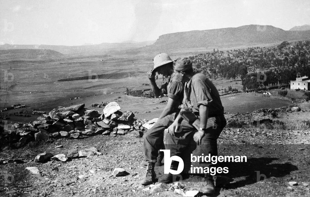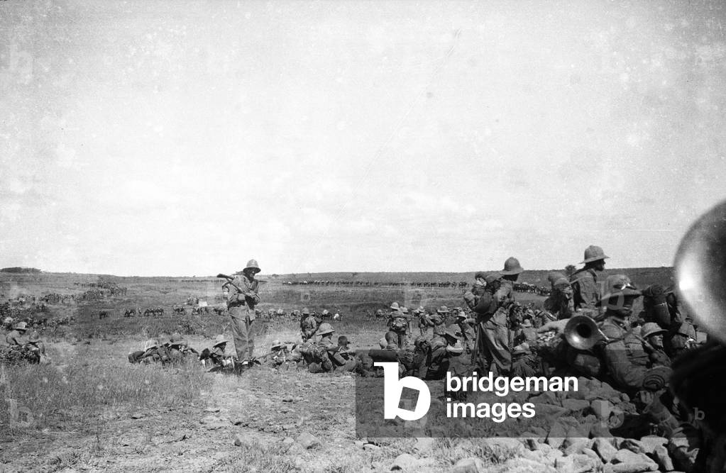 "Italo-Ethiopian War": Italian soldiers during the Italo-Ethiopian War (or Abyssinian War) (b/w photo), Italian Photographer, (20th century) / Bridgeman Images