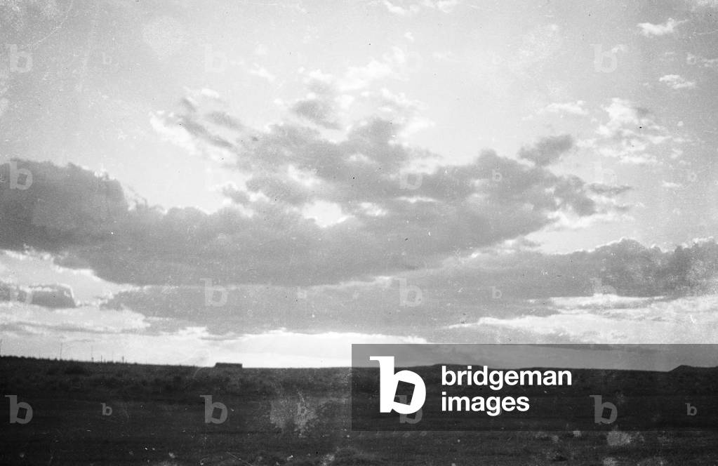 "Italo-Ethiopian War": an Ethiopian sunset during the Italo-Ethiopian War (or Abyssinian War) (b/w photo), Italian Photographer, (20th century) / Bridgeman Images