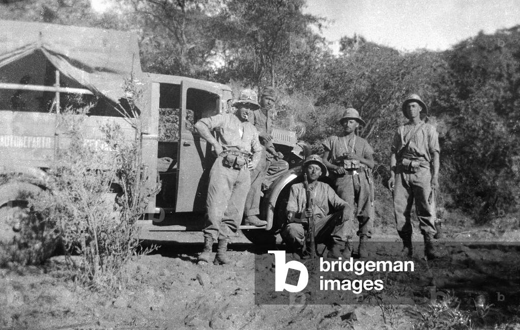 "Italo-Ethiopian War": group of Italian soldiers during the Italo-Ethiopian War (or Abyssinian War) (b/w photo), Italian Photographer, (20th century) / Bridgeman Images
