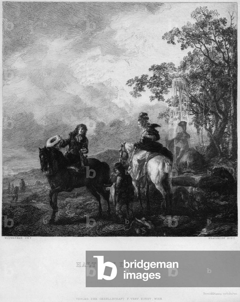 SZT5181892: "Halt auf der Jagd" (Break during the hunt) (engraving) / Bridgeman Images