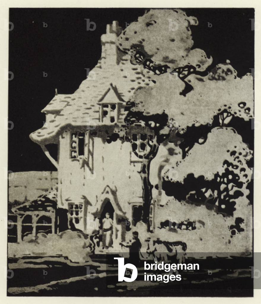 He bought a large quantity of food, put it in a basket, and carried it to the animal yard (colour litho), Sheringham, George (1884-1937) / Bridgeman Images