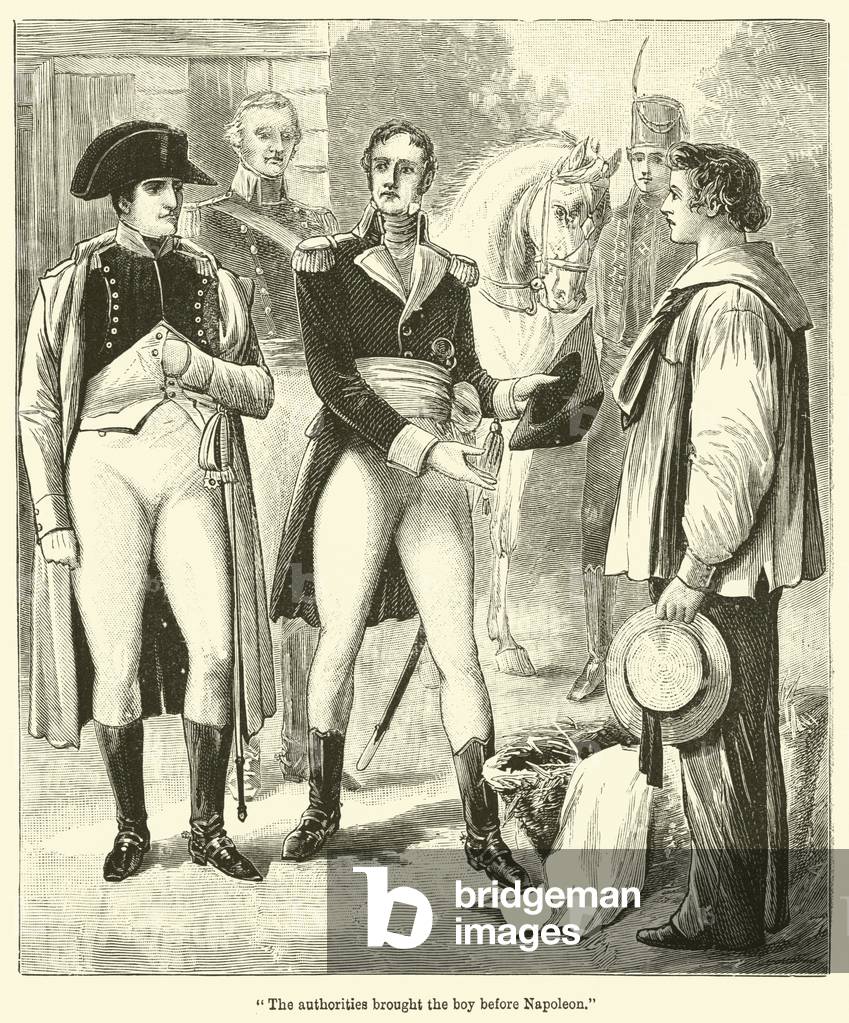 "The authorities brought the boy before Napoleon" (engraving), English School, (19th century) / Bridgeman Images