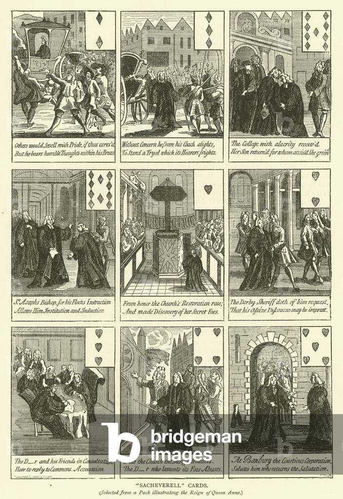 "Sacheverell" Cards, selected from a Pack illustrating the Reign of Queen Anne (engraving), English School, (19th century) / Bridgeman Images