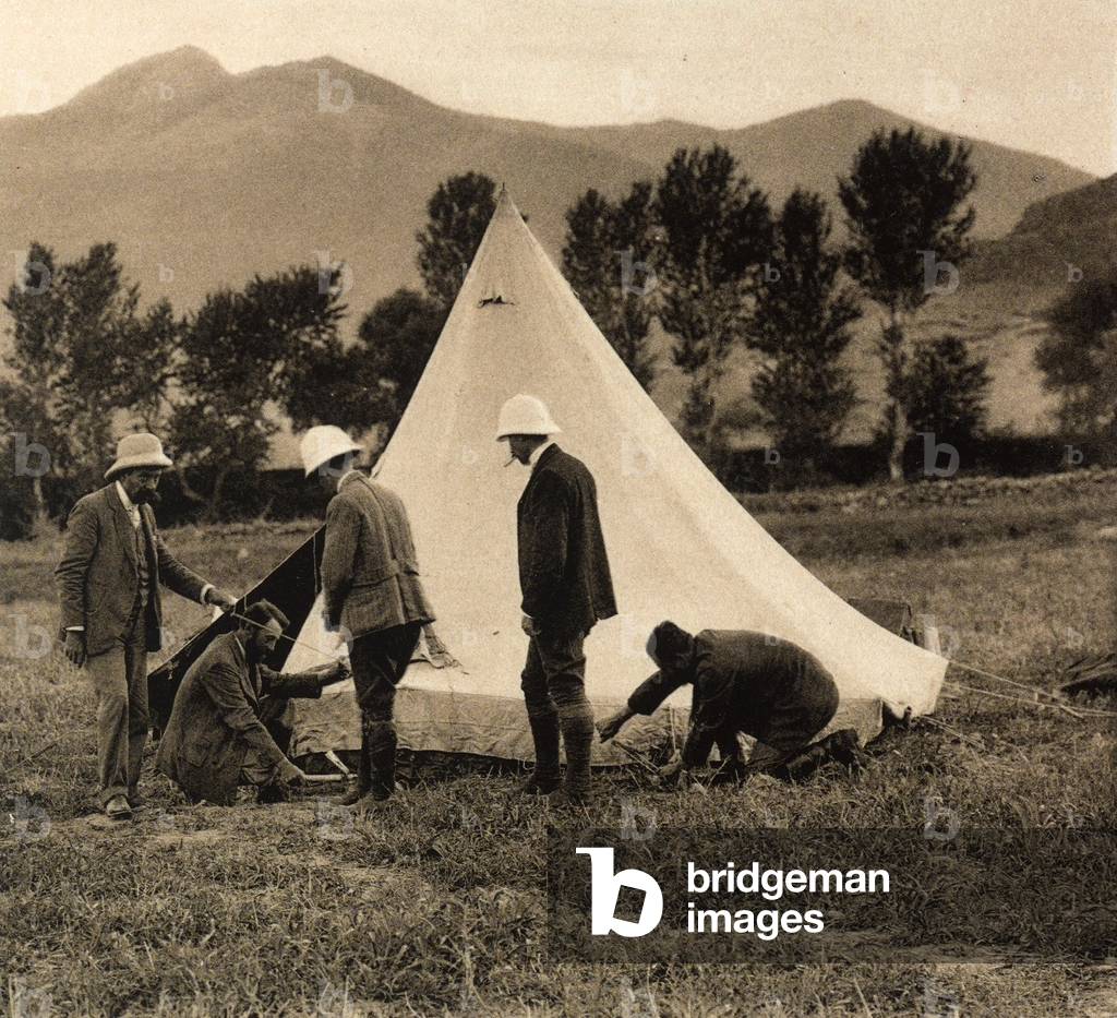 Men and camels around the Sphinx of Chefren, in Giza, Egypt / Bridgeman Images