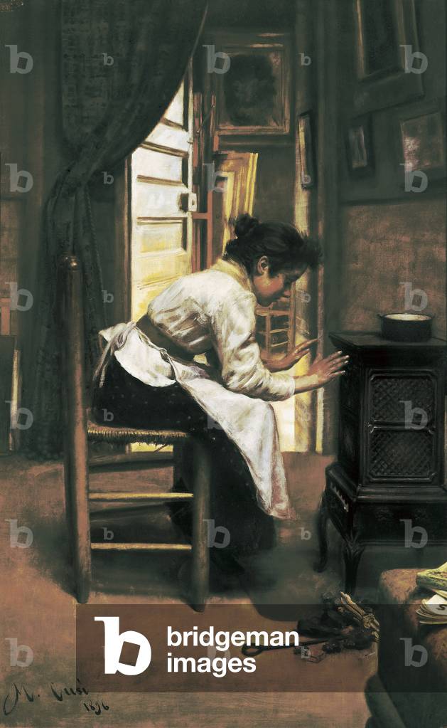 "A woman in front of the stove", painting by Manuel Cusi, 1896, Cusi, Manuel (1859-1922) / Bridgeman Images