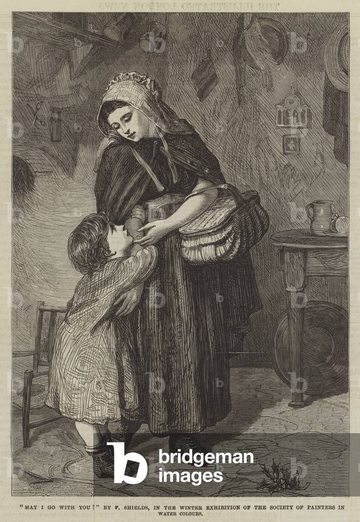 "May I Go With You?", in the Winter Exhibition of the Society of Painters in Water Colours (engraving), English School, (19th century) / Bridgeman Images