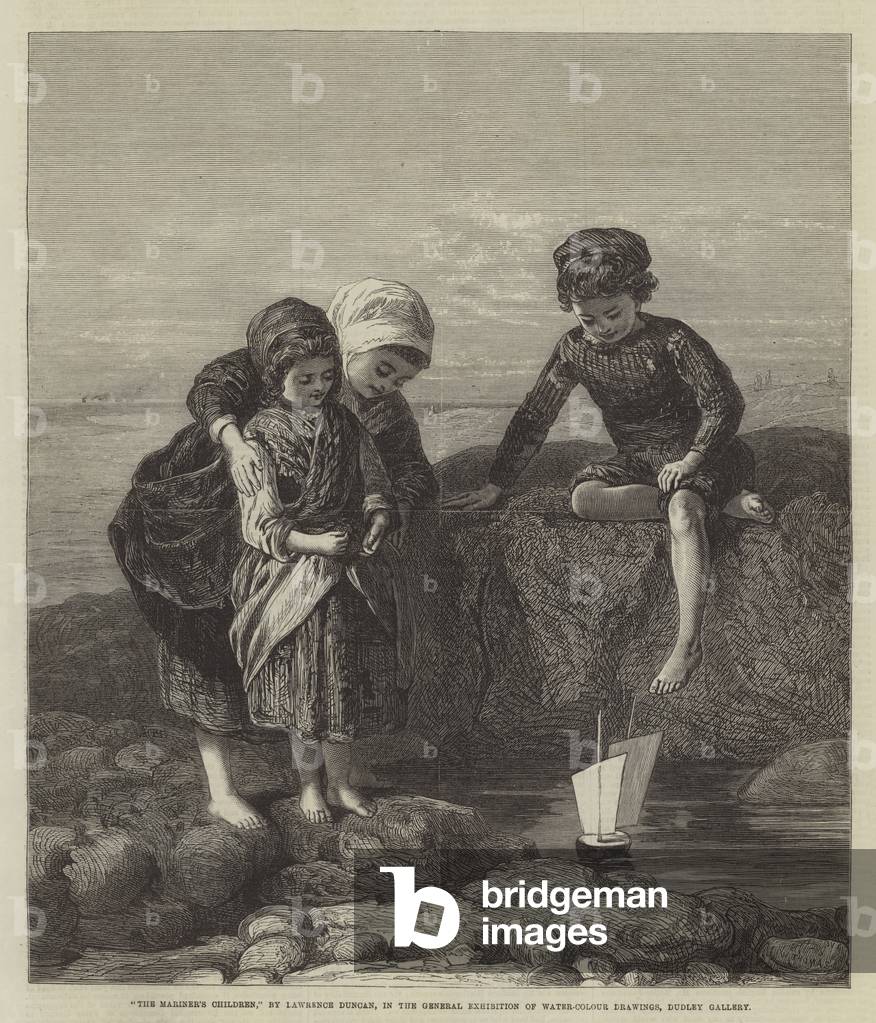 "The Mariner's Children," in the General Exhibition of Water-Colour Drawings, Dudley Gallery (engraving), Duncan, Lawrence (fl.1860-91) / Bridgeman Images
