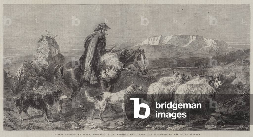 "Tired Sheep, Glen Spean, Scotland," from the Exhibition of the Royal Academy (engraving), Ansdell, Richard (1815-85) (after) / Bridgeman Images