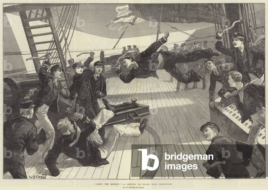"Sling the Monkey!" A Sketch on Board HMS Inconstant (engraving), Overend, William Heysham (1851-98) (after) / Bridgeman Images