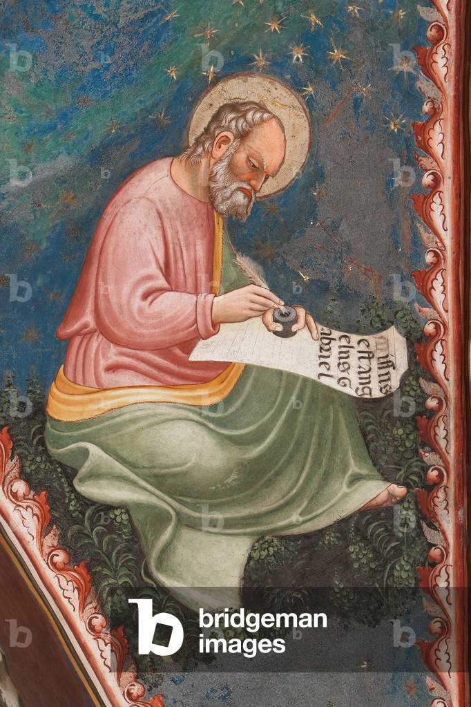 "St. Luke Evangelist", writing " Missus est angelus Gabriel", c.1420 (fresco), Master of Vignola (15th century) / Bridgeman Images