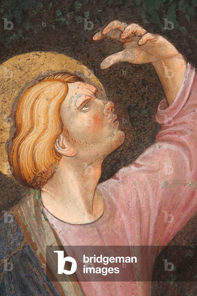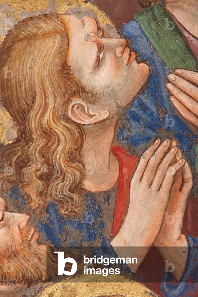 "Assumption of the Virgin" and "the Virgin Mary dropping the girdle or Holy Belt to St. Thomas ", Detail of an apostle, c.1420 (fresco), Master of Vignola (15th century) / Bridgeman Images