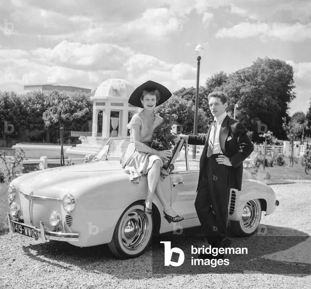 "Concours d'Elegance", in Enghien, near Paris, June 17, 1950 : French actress Renee Cosima (b/w photo) / Bridgeman Images