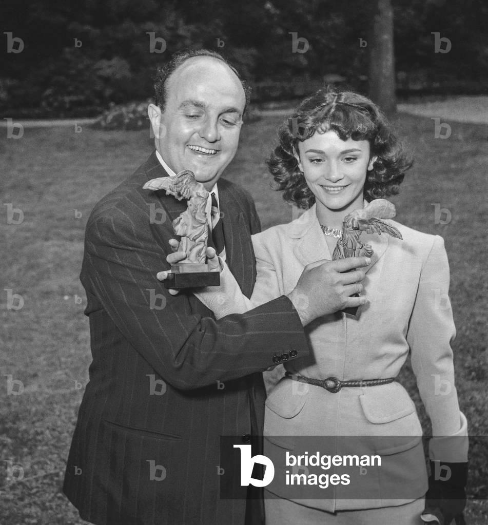 "Victoires du Cinema Francais" (French cinema awards), Paris, June 22, 1950 : French actors Bernard Blier and Daniele Delorme (b/w photo) / Bridgeman Images