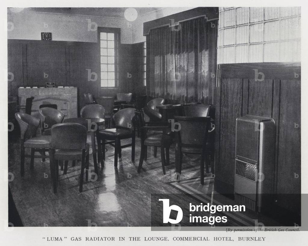 "Luma" Gas Radiator in the Lounge, Commercial Hotel, Burnley (b/w photo), English Photographer, (20th century) / Bridgeman Images